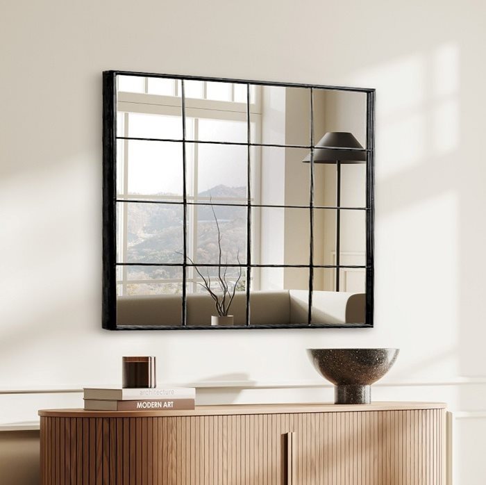 מראה מעוצבת בסגנון ריבועים מחולקים מסגרת מתכת שחורה