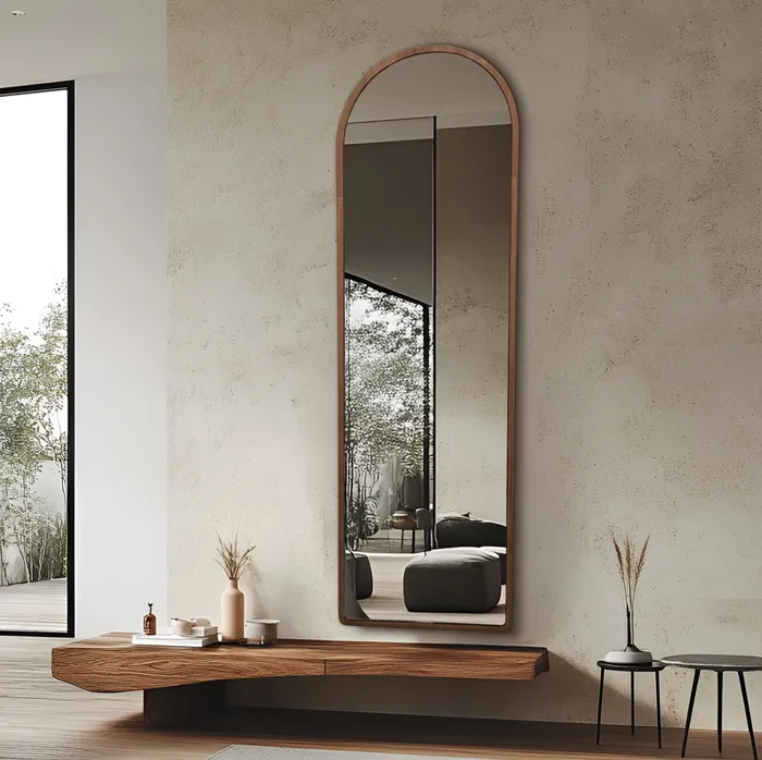 מראה חצי מעוגלת דגם MOON WOOD מסגרת עץ -160/50 ס''מ