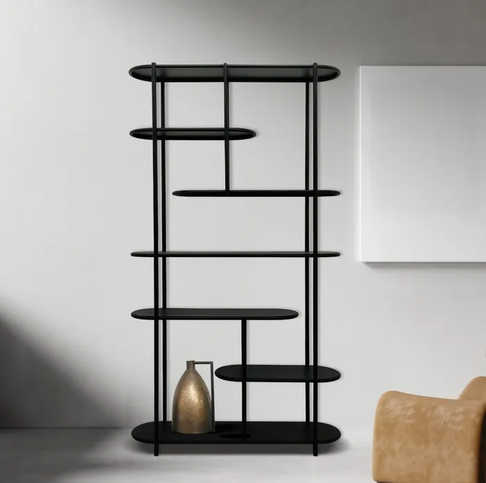 ספריה דקורטיבית דגם MIA מתכת שחורה מדפים עגולים -180 ס''מ
