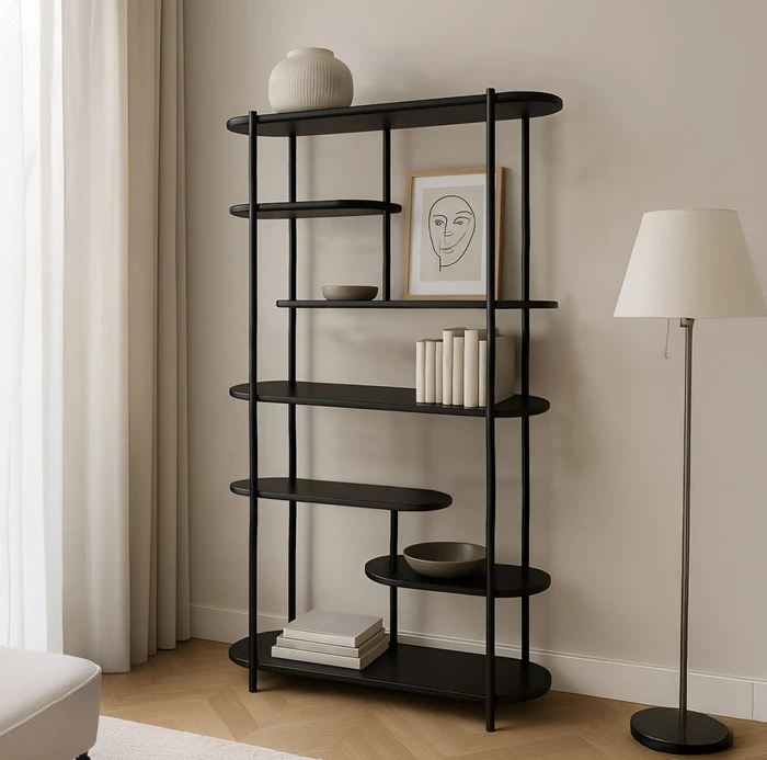 ספריה מעוצבת דגם MIA עשוייה מתכת שחורה בשילוב מדפים