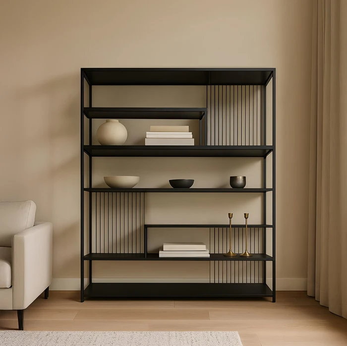 ספריה מעוצבת דגם LIAV XL עשוייה מתכת שחורה בשילוב מדפים