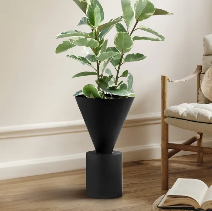מעמד עציצים מעוצב משפך דגם ROBIN מתכת שחור