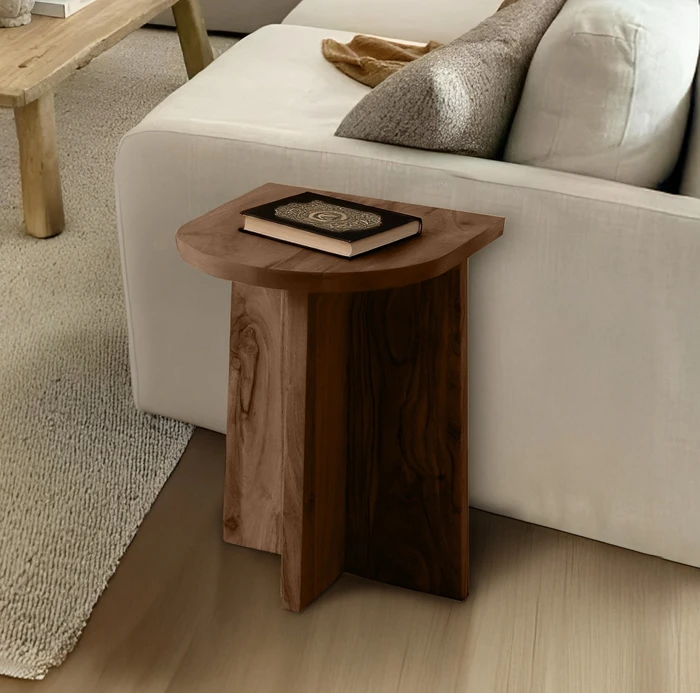 שולחן צד מעוצב דגם KINGSTON עץ מלא גוון אגוז