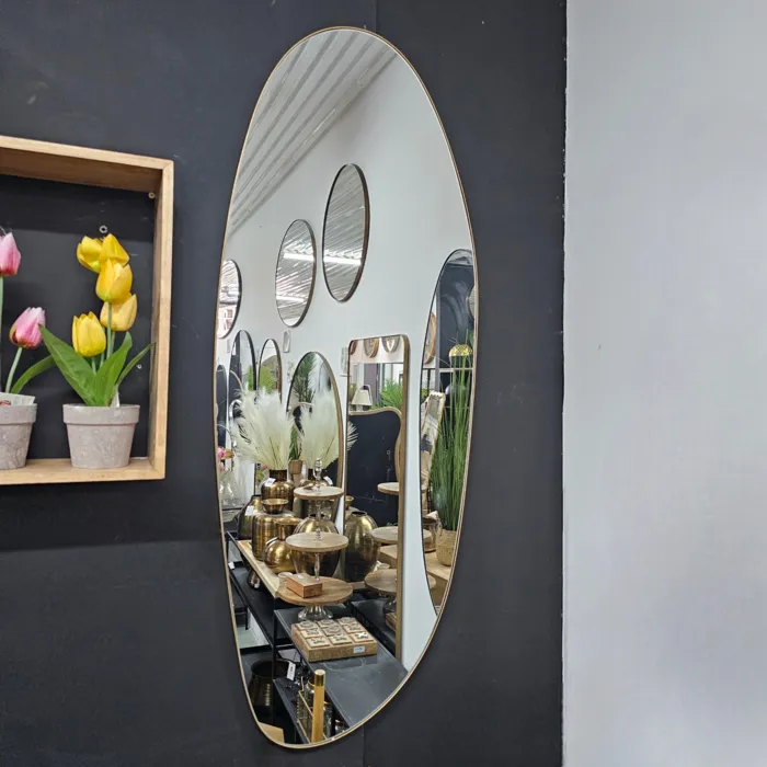 מראה אמורפית מעוצבת דגם NANO מסגרת מתכת זהב דקה- מידות לבחירה
