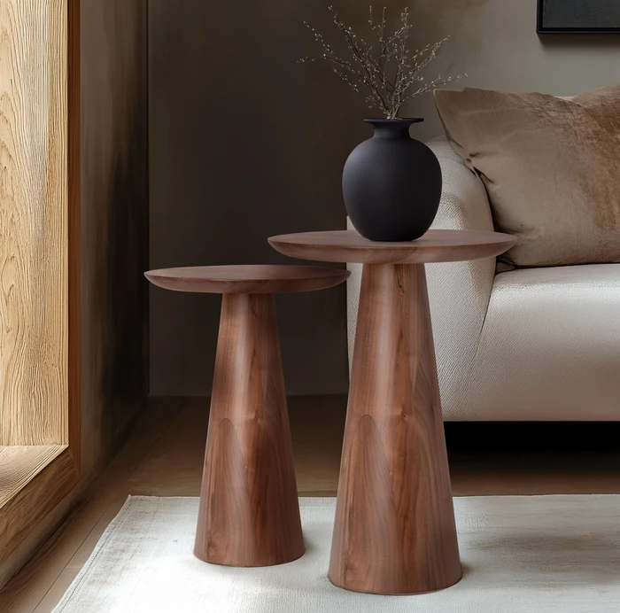 שולחן צד מעוצב קונוס דגם OLE עשוי עץ מלא בגוון אגוז מושלם