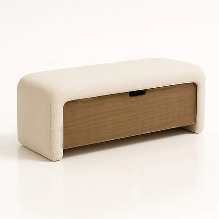 ספסל מעוצב דגם ROCKY בד שמנת כולל מגירה -120 סמ