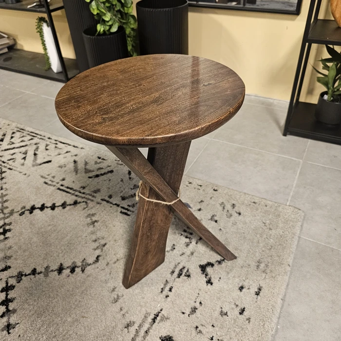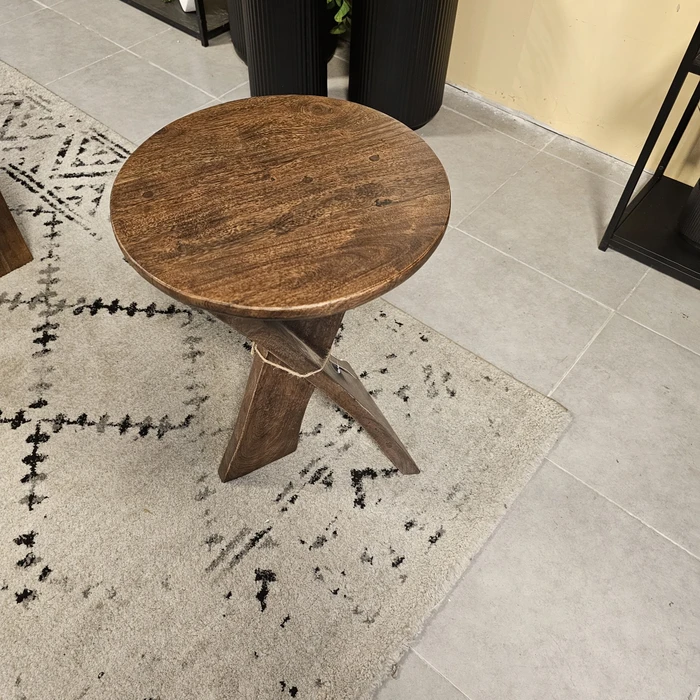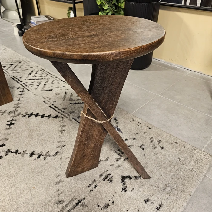 שולחן צד מעוצב דגם INDI בעיצוב איקס עץ בגוון אגוז