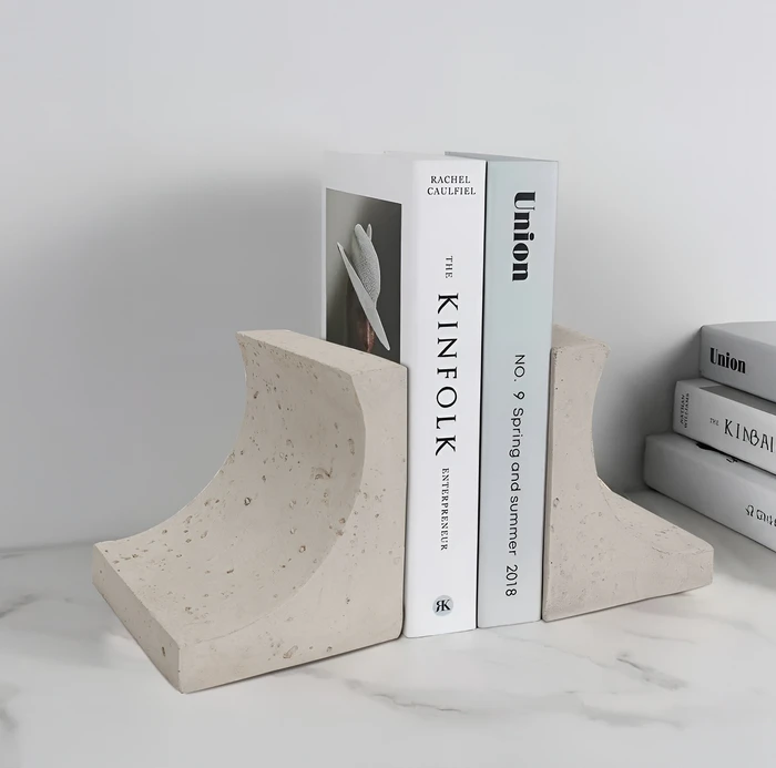 זוג תומכי ספרים משופעים דגם GOSHEN דמוי אבן טבעית בגוון טרוורטין