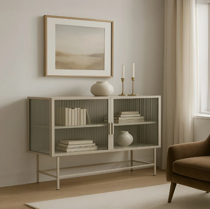 ויטרינה יוקרתית GISELE מתכת גוון סהרה ודלת זכוכית