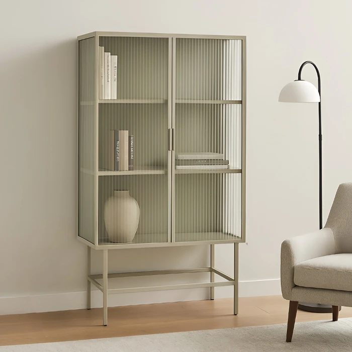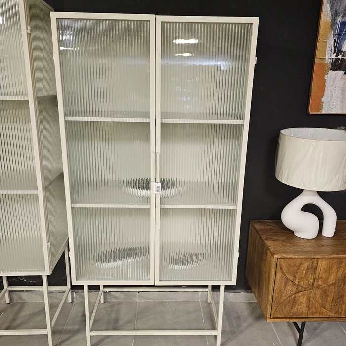 ויטרינה יוקרתית מעוצבת GISELE מתכת גוון סהרה דלתות זכוכית -160 סמ