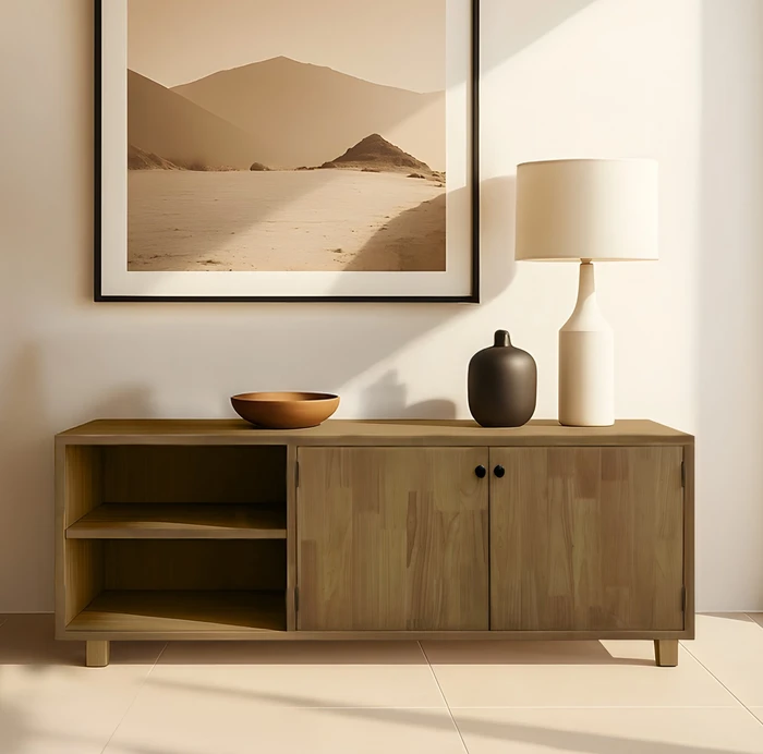 מזנון מעוצב דגם ALBA עץ טבעי 2 דלתות ומדף פתוח -160 סמ