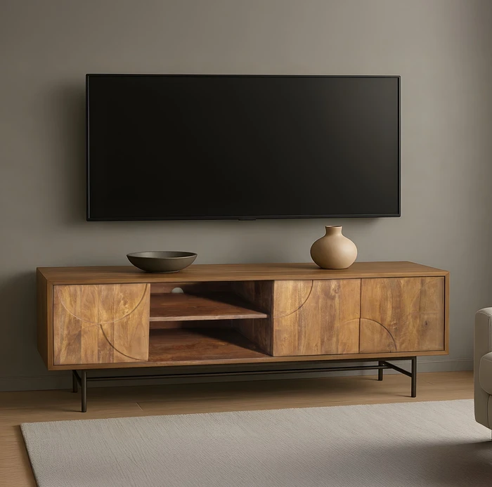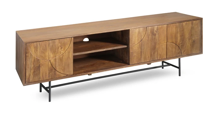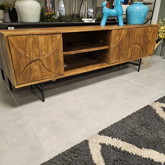 מזנון מעוצב דגם CUBA עץ מנגו דלתות בשילוב מדף פתוח-175 סמ