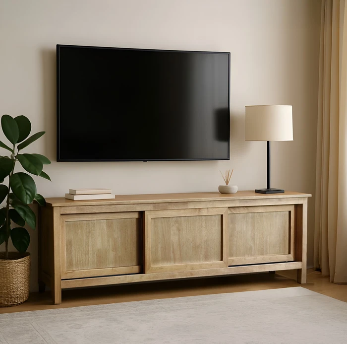 מזנון מעוצב דגם ALBA עץ גוון טבעי 3 דלתות הזזה-180 סמ