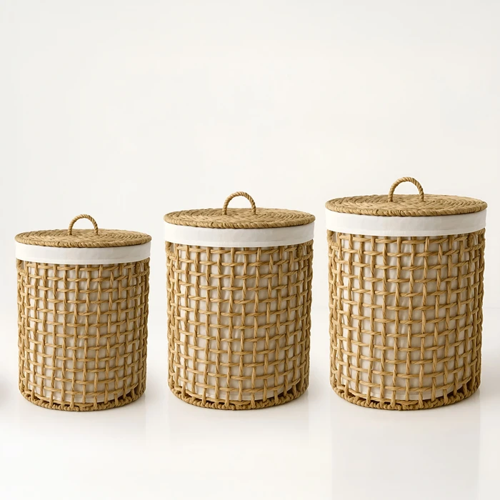 סל כביסה קש עגול מעוצב קלוע דגם PLAITED-מידות לבחירה