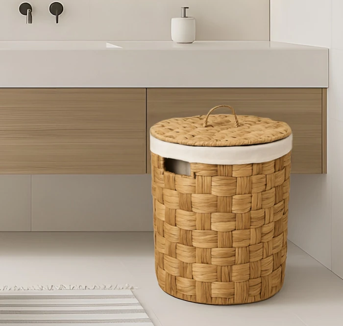 סל כביסה קש עגול מעוצב דגם MAKORI מושלם ואיכותי ברמת גימור גבוהה