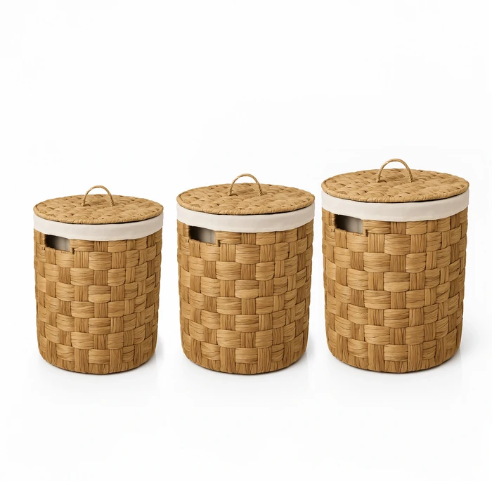 סל כביסה קש עגול מעוצב תשבץ דגם MAKORI-מידות לבחירה