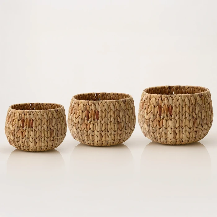 סט 3 סלי קש שמנמנים מעוצבים דגם FATI מושלמים ואיכותיים ברמת גימור גבוהה
