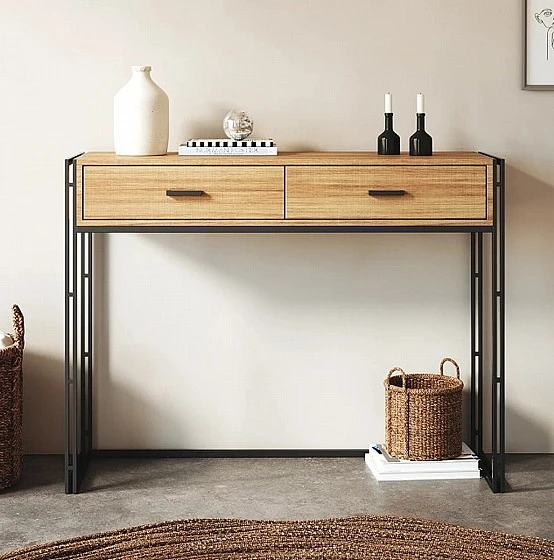 קונסולה כניסה מעוצבת לבית דגם LIOR עץ בשילוב מתכת שחורה
