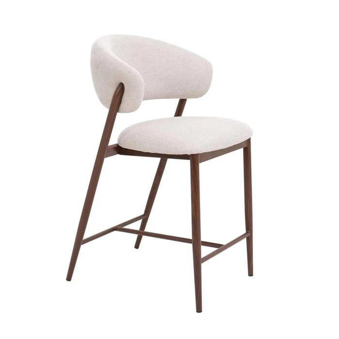 כסא בר מעוצב דגם MONZA בד גוון אבן רגל מתכת גוון אגוז