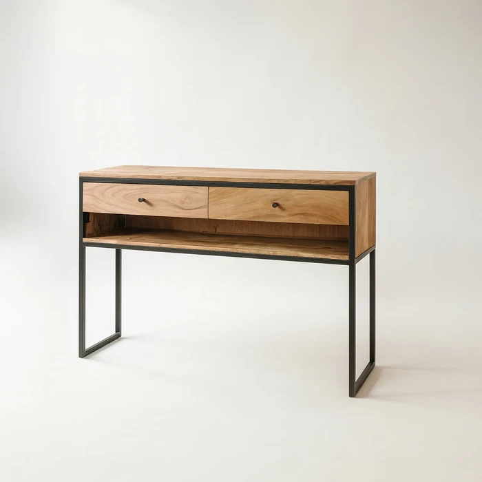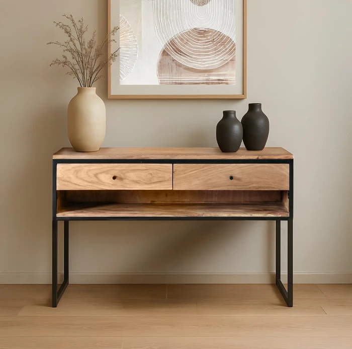 קונסולה מעוצבת דגם INDO עץ מנגו מלא בשילוב ברזל