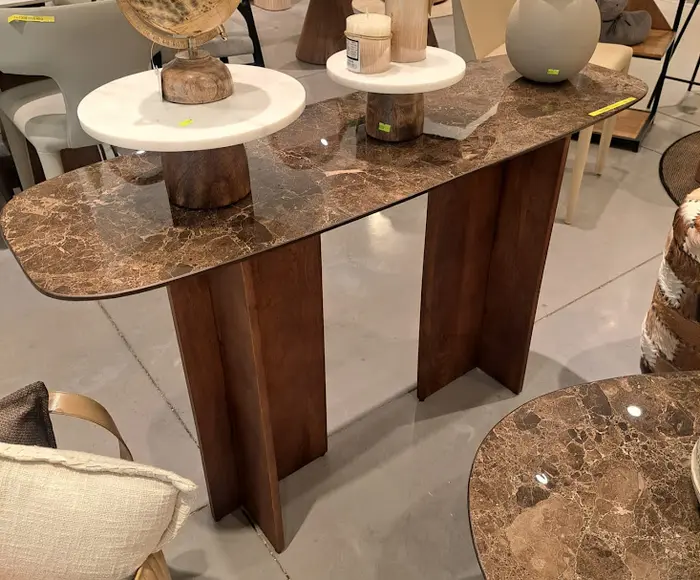 קונסולה כניסה מעוצבת דגם LOKA משטח שיש גרניט פורצלן בגווני חום