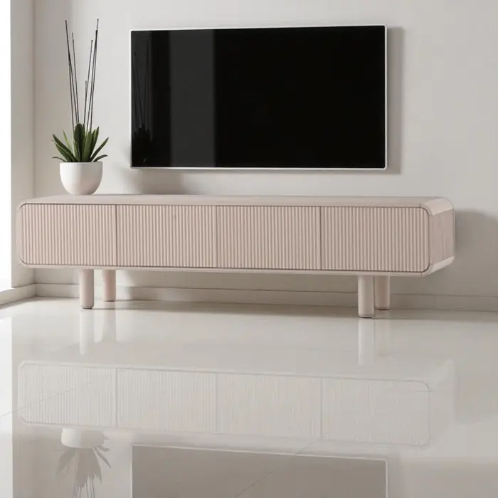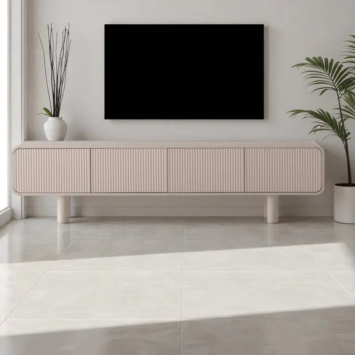 2 דלתות ו-2 מגירות CNC נפתחות בטאץ' ורגלי מתכת גוון סהרה