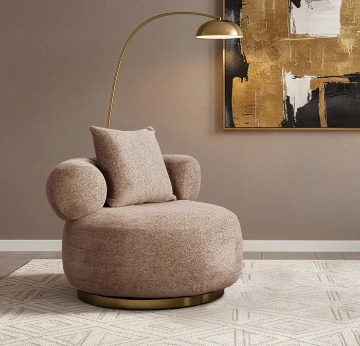 כורסא עגולה מעוצבת דגם LOVE בד איכותי גוון קפה מושלם