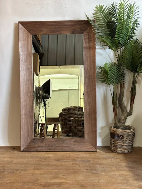 מראה מעוצבת דגם FALCAO עץ טבעי פורניר אגוז מושלם ויוקרתי