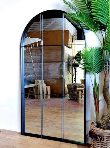 מראה קשת מעוצבת דגם WINI מסגרת חלון מחולקת מתכת שחורה