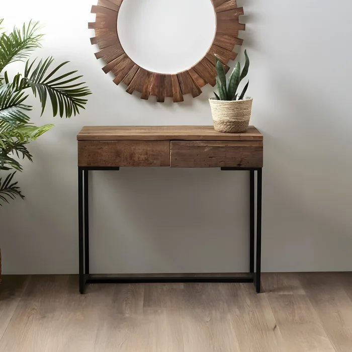 קונסולה מעוצבת דגם OLEN עץ שיטה ממוחזר- 2 מגירות