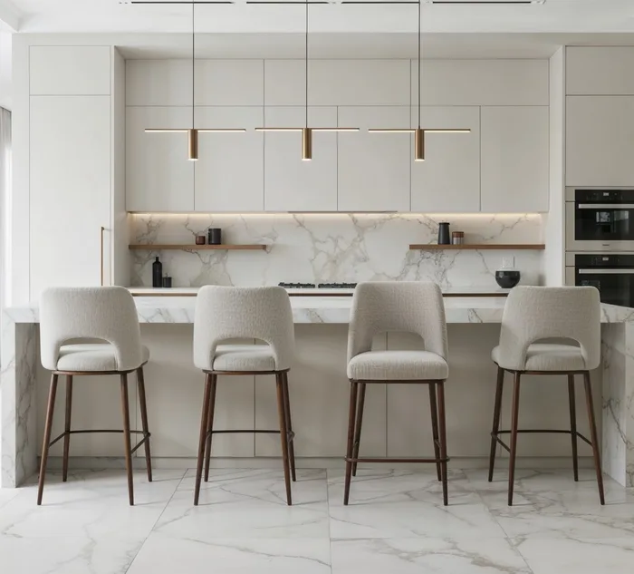 כסא בר מעוצב דגם PARIS מושב מרופד בד גוון בז' טרנדי