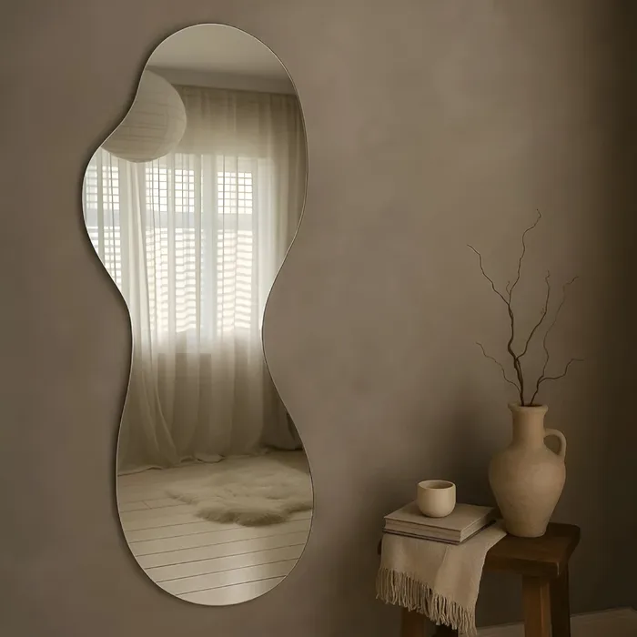 מראת גוף בצורה אמורפית לתליה זכוכית קריסטל איכותית