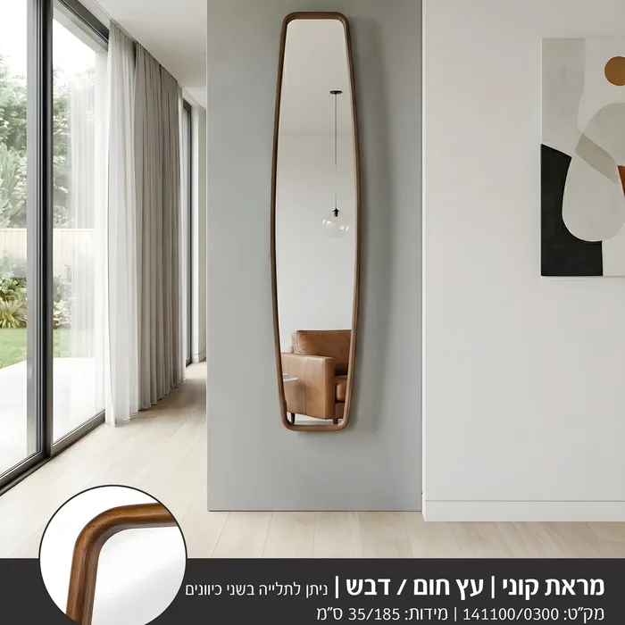 מראה צרה מעוצבת דגם CONY -עץ חום דבש