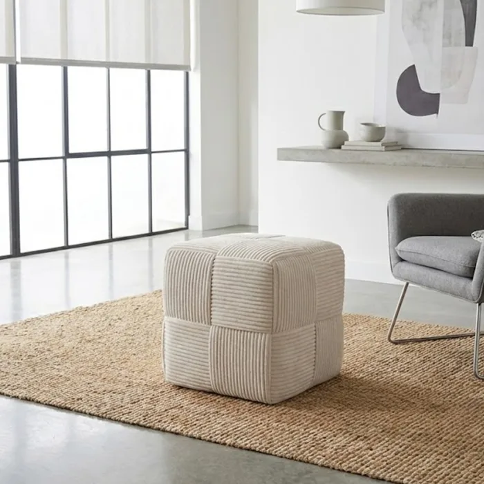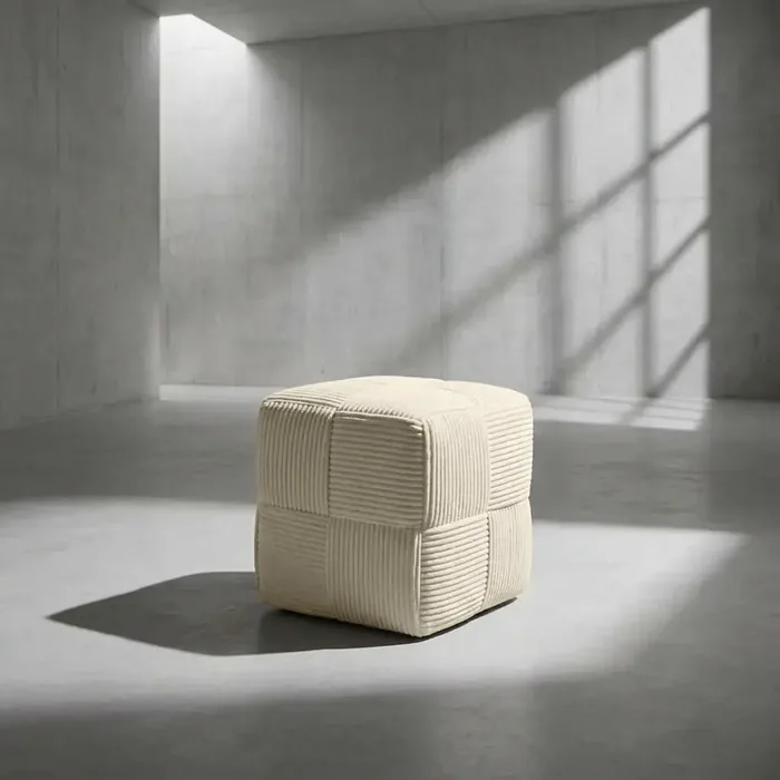 הדום זה הוא הרבה מעבר לרהיט – הוא פריט עיצובי שמשדרג כל פינה. הוא מתאפיין במבנה גיאומטרי מדויק ובטקסטורת קוביות פרוותים בולטות המעניקה לו מראה עשיר, תלת-ממדי ומגע מלטף. העיצוב המינימליסטי והצבע הבהיר מאפשרים לו להשתלב בהרמוניה בסלון, בחדר השינה או בפינת הקריאה.