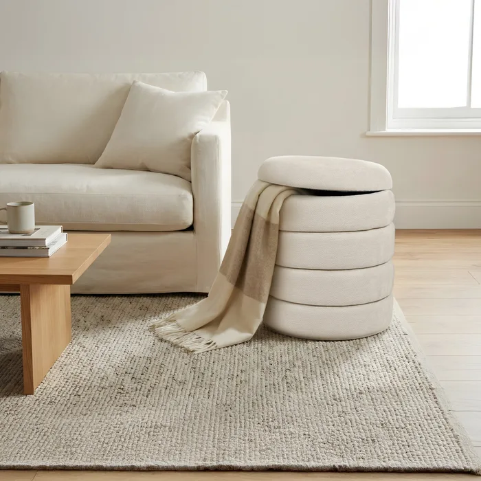 הכניסו סטייל מתוחכם ופתרון אחסון חכם לבית עם הדום RING הייחודי שלנו. שילוב מושלם בין טקסטורה טרנדית למבנה שכבות גיאומטרי שמוסיף עומק ורכות לכל חלל.הדום זה הוא פריט הצהרה שמעוצב בהשראת הקווים הנקיים של העיצוב הסקנדינבי המודרני. הוא מתאפיין במבנה של 4 טבעות המעניקות לו מראה פיסולי ורך כאחד. הבד המרופד בטקסטורה העשירה אינו רק נעים למגע, אלא גם מעניק תחושת חמימות ויוקרה שנשארת רלוונטית לאורך זמן.