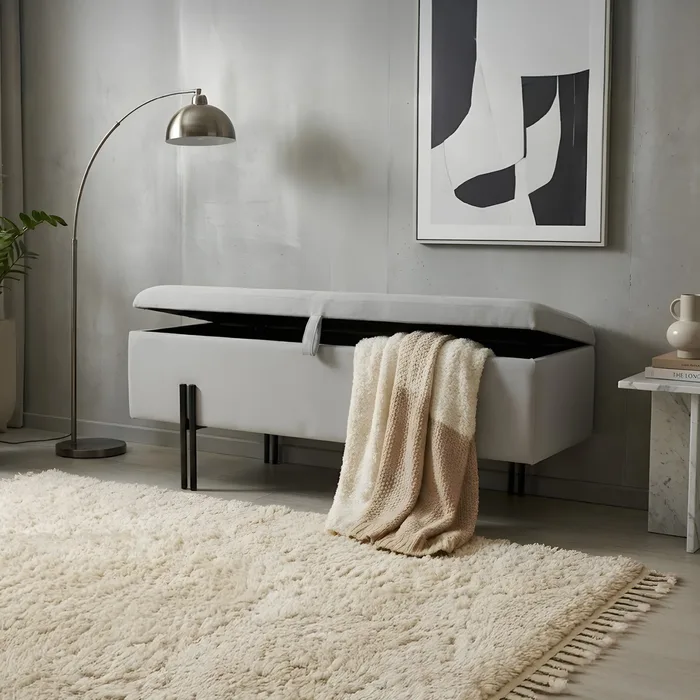 מעבר להיותו פריט ישיבה נוח או מקום להנחת רגליים לצד הספה או הכורסה, ההדום כולל גם פתרון אחסון חכם. המכסה העליון ניתן לפתיחה ובתוכו חלל אחסון נסתר המאפשר לשמור על סדר ולארגן פריטים כמו שמיכות, כריות, צעצועים או חפצים קטנים.