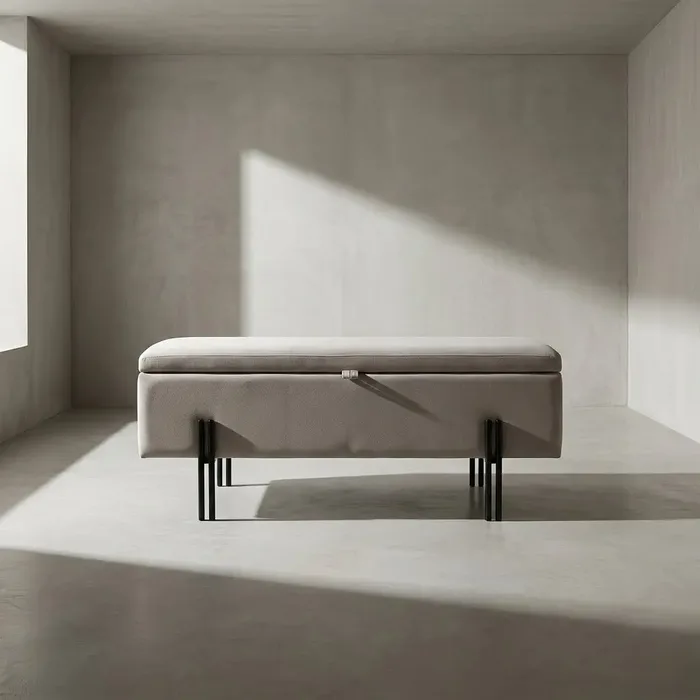 ספסל מעוצב דגם GONI כולל אחסון - אפור