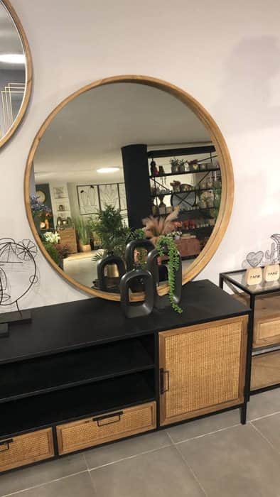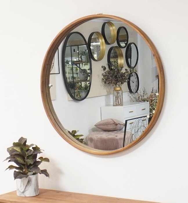 מראה עגולה מעוצבת דגם WOODY עץ מלא טבעי - מידות לבחירה