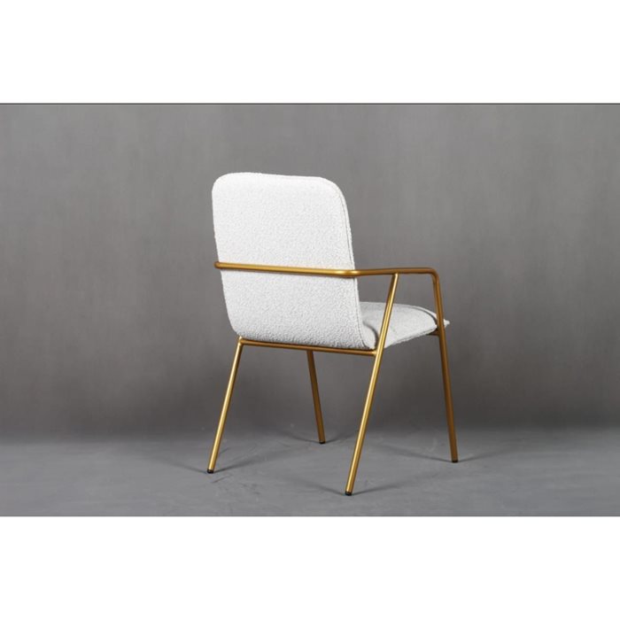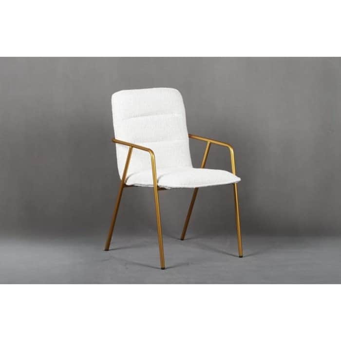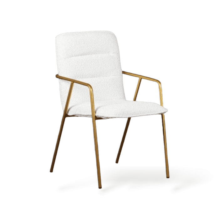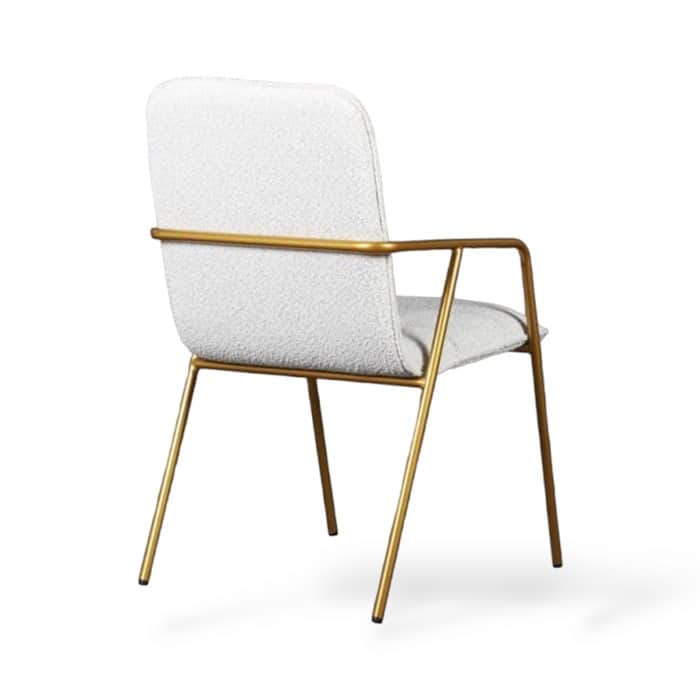 כסא אוכל מעוצב דגם MILANO בד בוקלה לבן בשילוב ידיות מתכת זהב