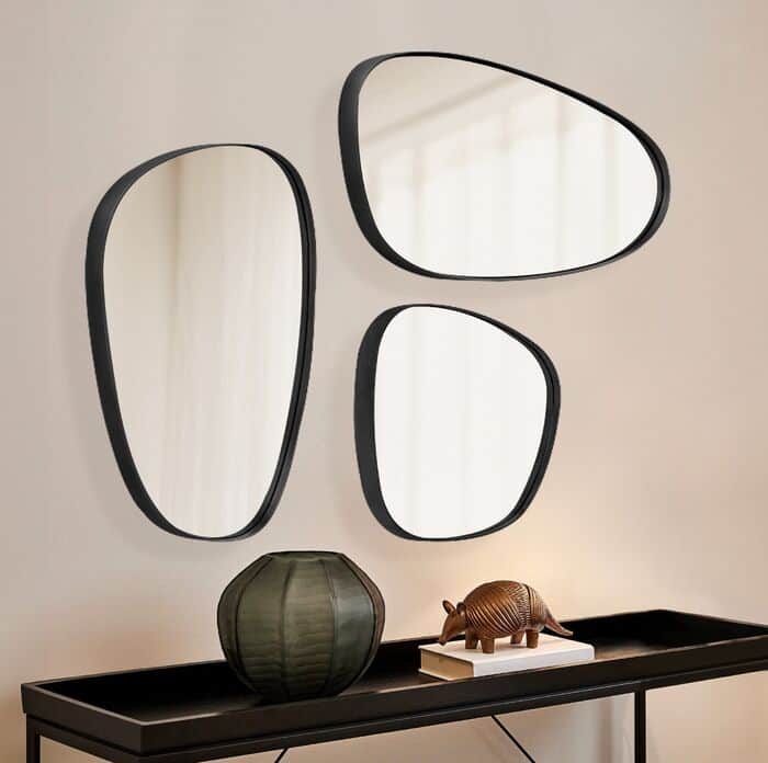 מראות אמורפיות מעוצבות DYLAN מסגרת מתכת שחורה-מבחר מידות לבחירה
