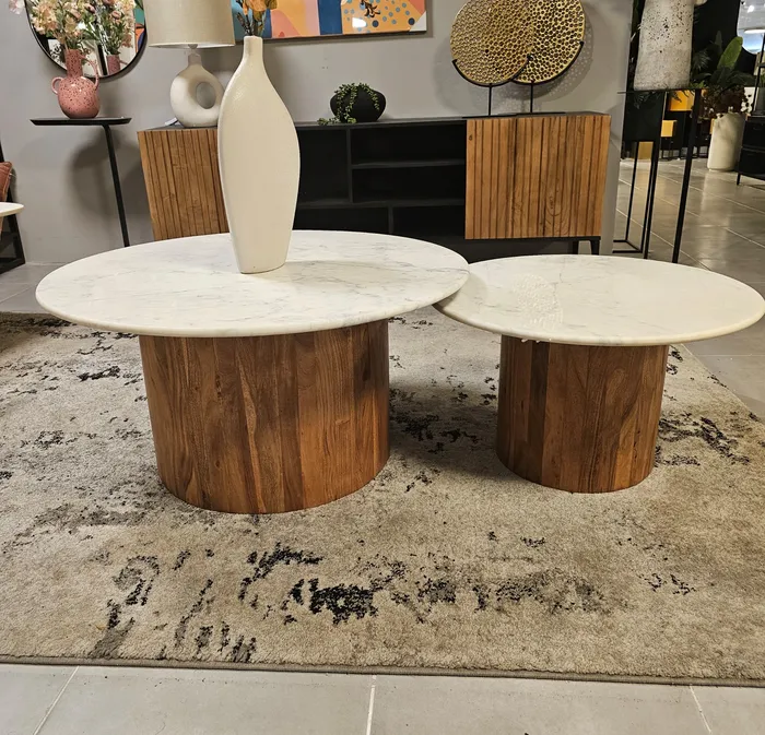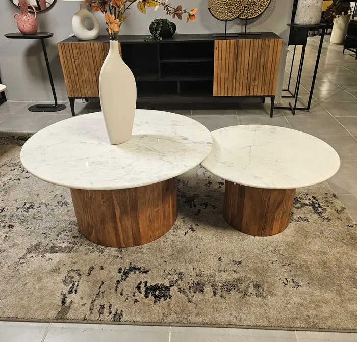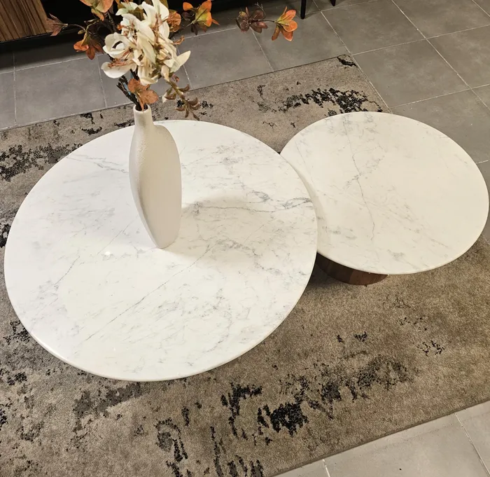סט 2 שולחנות סלון יוקרתיים דגם BIG LUSO-שיש לבן רגל עץ