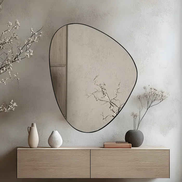 מראה מעוצבת בסגנון משולש מעוגל, מתאים למגוון רחב של סגונות עיצוב.