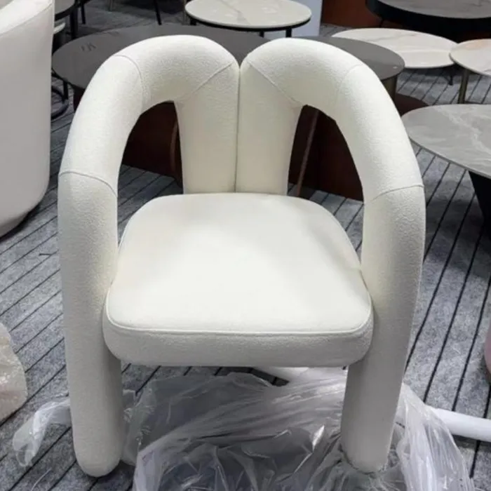 כסא מעוצב דגם ROBERT מראה מיוחד ויוקרתי בד בוקלה גוון לבן
