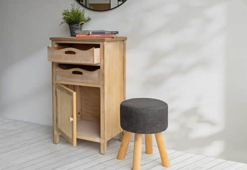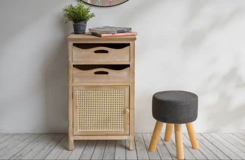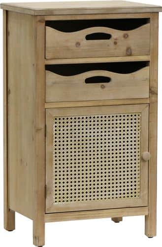 שידה מעוצבת דגם BARLEY עץ בשילוב ראטן 2 מגירות ודלת