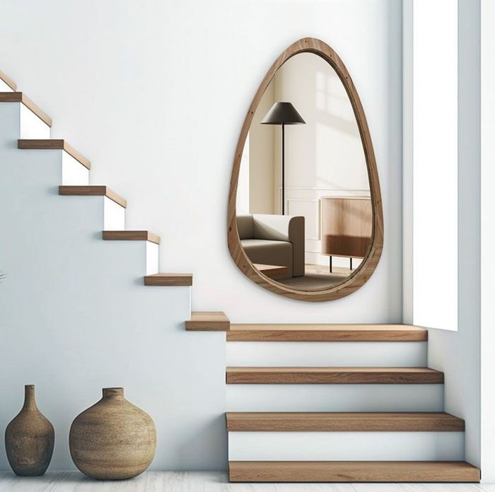 מראה מעוצבת דגם KRID אמורפית בשילוב מסגרת עץ מושלמת
