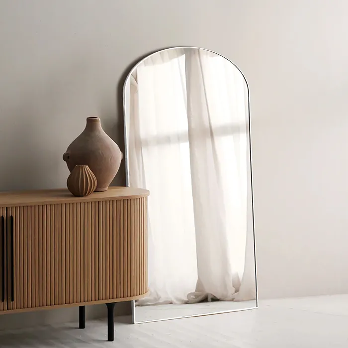 מראה מעוצבת דגם LUXURY קשת רחבה חצי מעוגלת מסגרת מתכת לבנה
