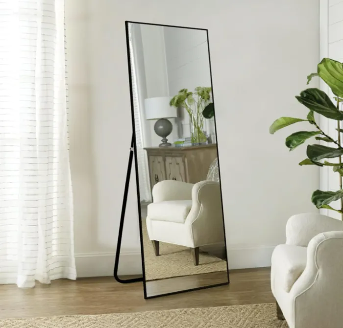מראת גוף מלבנית דגם BILLY עומדת על רגל/תליה מסגרת אלומיניום שחורה