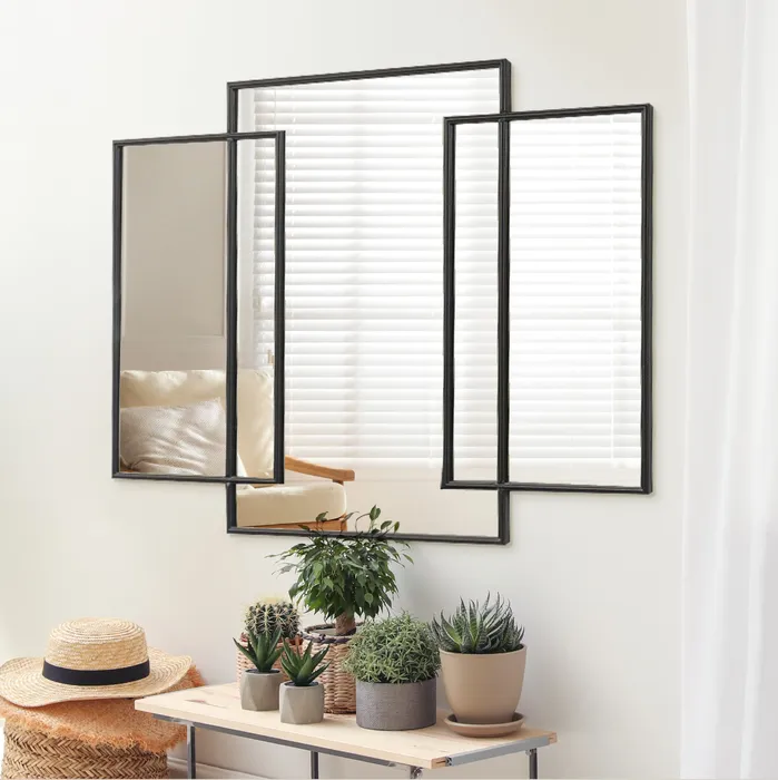מראה מעוצבת דגם OBLONG 3 מלבנים מחוברים מתכת שחורה