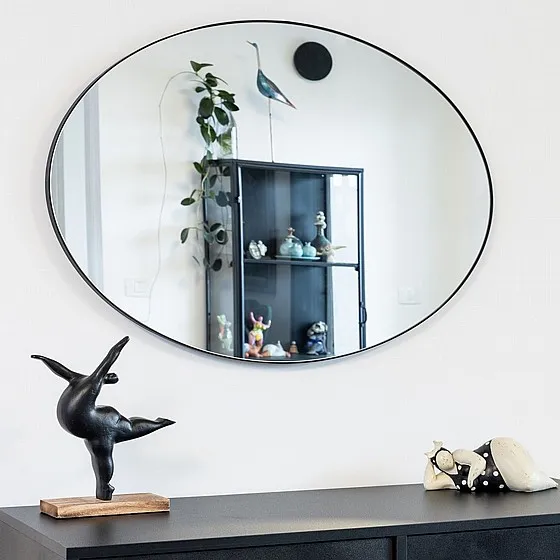 מראה דגם NORMAN אליפסה אובלית מסגרת מתכת דקה שחורה