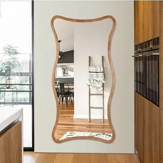 מראה דגם HORN מסגרת עץ בגוון טבעי מעוצבת בסגנון גלים